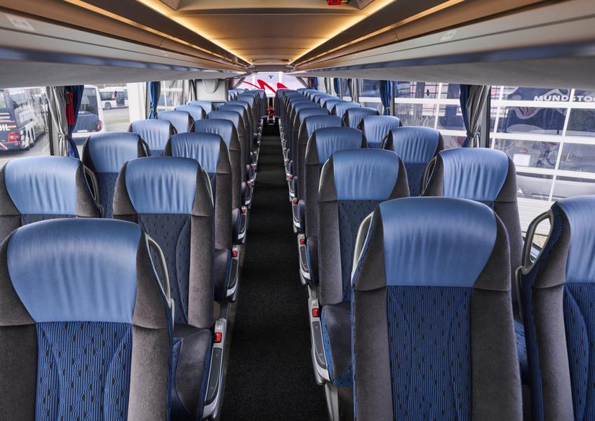 Fast alle Reisebusse von Mundstock verfügen über Klimaanlagen für einen erfrischenden Kick, Bordküchen für den kleinen Hunger zwischendurch und Toiletten für die dringenden Momente. Lehnen Sie sich in den bequemen Sitzen zurück und genießen Sie eine Beinfreiheit, die selbst unseren Basketballspielern ausreichend Platz bietet.